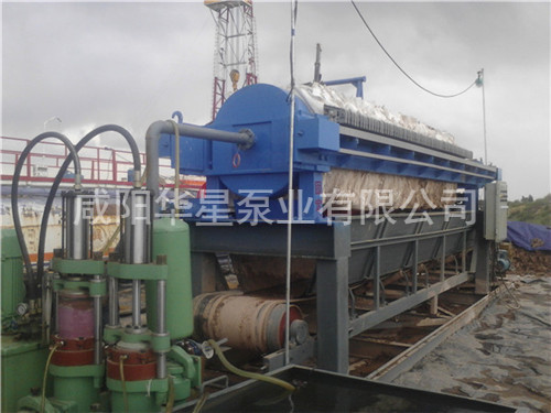 壓濾機(jī)進(jìn)料的專用泵。壓濾機(jī)操作前須進(jìn)行整機(jī)檢查:查看濾布有無打折或重疊現(xiàn)象,電源是否已正常連接。檢 查后即可進(jìn)行壓緊操作,先按一下“啟動(dòng)“按鈕,油泵開始工作,然后再按一下“壓緊”按 鈕,活塞推動(dòng)壓緊板壓緊,當(dāng)壓緊力到達(dá)調(diào)定高點(diǎn)壓力后,液壓系統(tǒng)自動(dòng)跳停。